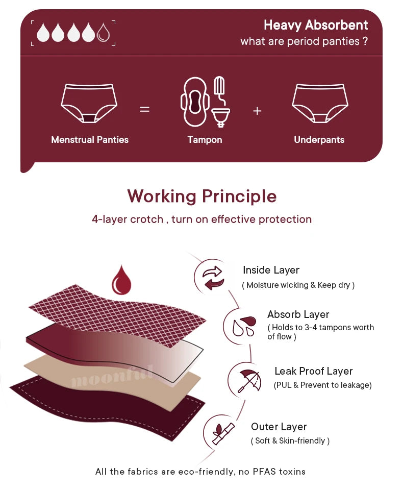 For Heavy Flow Days: Wear alone to replace the use of disposable items or wear with tampon