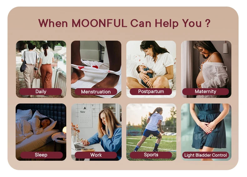 Product Uses: Menstrual cycle, Postpartum, Minor incontinence, Maternity